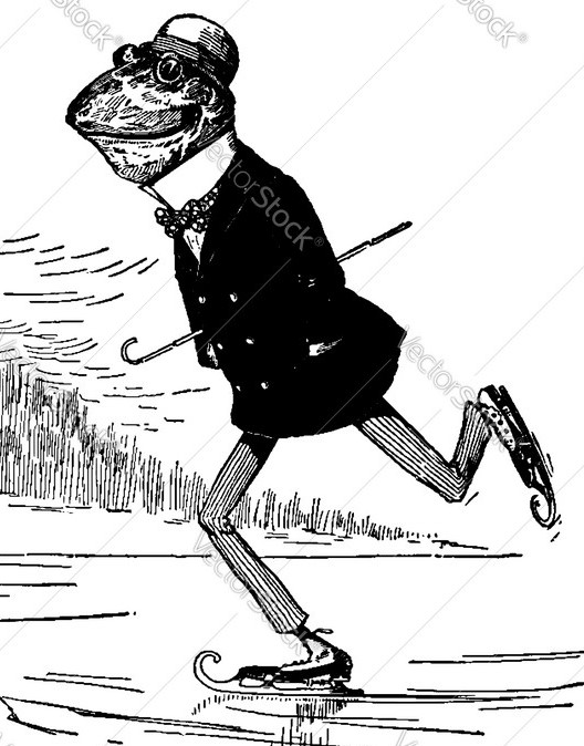 frog-ice-skating-on-lake-vintage-vector-19003251