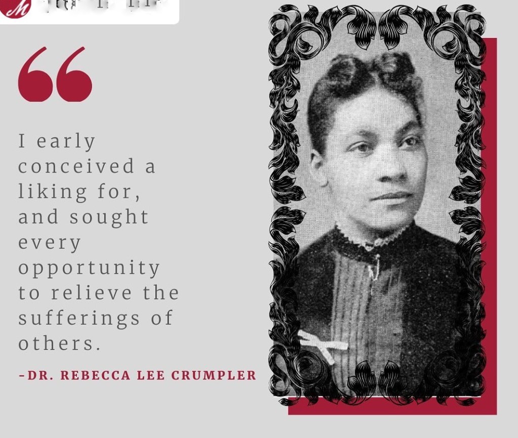 Rebecca Lee Crumpler changed the face of medicine. I found out about her in 2019 and wrote a post on her. What a remarkable woman she was. And, thank God for her aunt who was such a positive influence in her life.