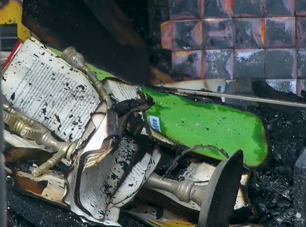 Fifty-eight years later, Millie watches the horrifying newscast. Photos of scorched Torah scrolls appear on the screen. She murmurs in agreement with the temple president, “This won’t stop anything. We will rebuild.”