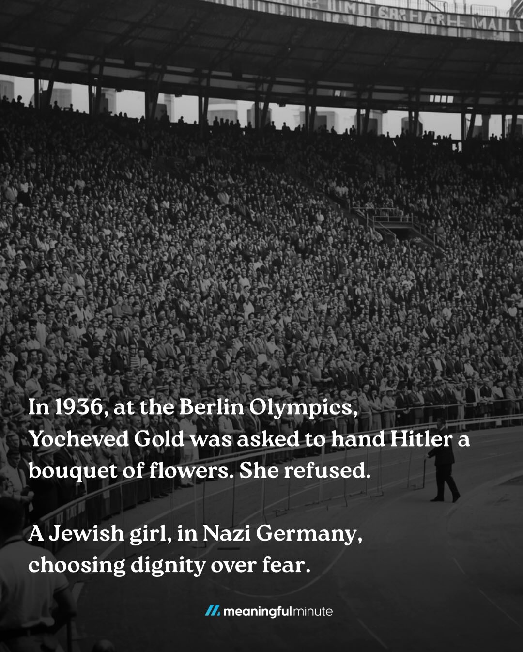 As she pulled away, Yocheved’s blue eyes spilled over. She smiled and pushed back a lock of blonde hair. “I wanted to see the opening ceremony. All those athletes from all over the world. Besides, they thought I was just another Arian girl. But…”