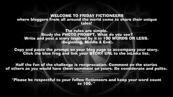 The next photo is the PROMPT. Remember, all photos are property of the photographer, donated for use in Friday Fictioneers only. They shouldn’t be used for any other purpose without express permission. It is proper etiquette to give the contributor credit.