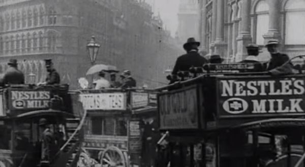 Passengers crowded themselves into square compartments atop coaches whose side and back banners advertised such necessities as Lipton’s Teas and Nestlé’s Milk. Above all else, London’s churches fascinated him with their clock towers. A man never needed to ask the time in Britain.
