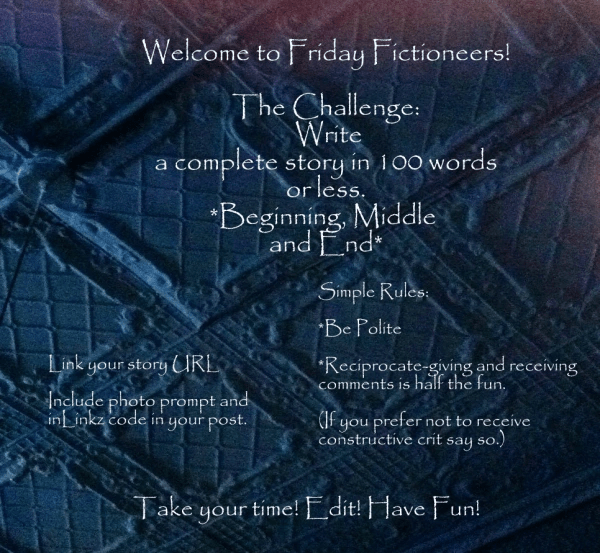 The next photo is the PROMPT. Remember, all photos are property of the photographer, donated for use in Friday Fictioneers only. They shouldn’t be used for any other purpose without express permission. It is proper etiquette to give the contributor credit.