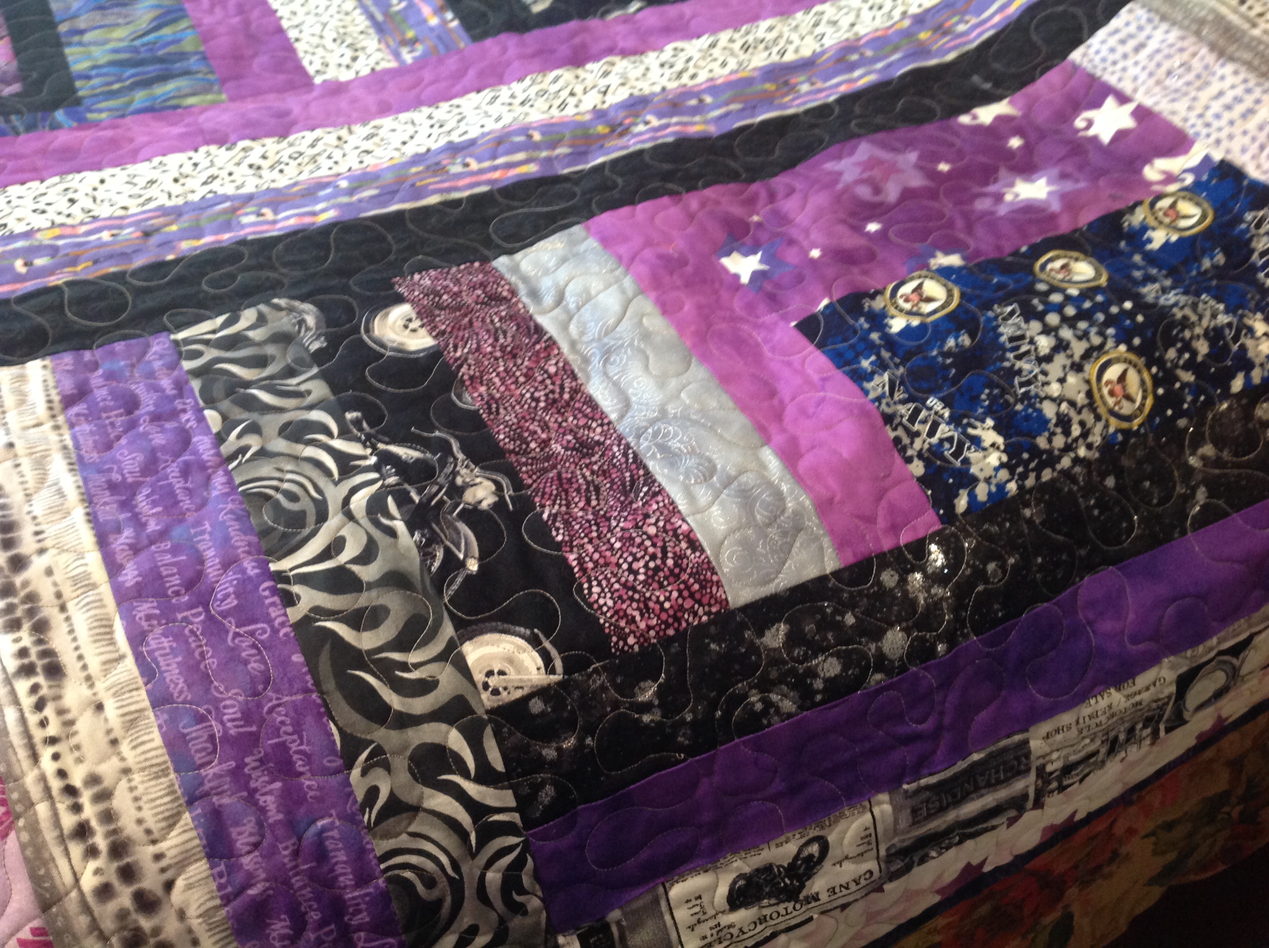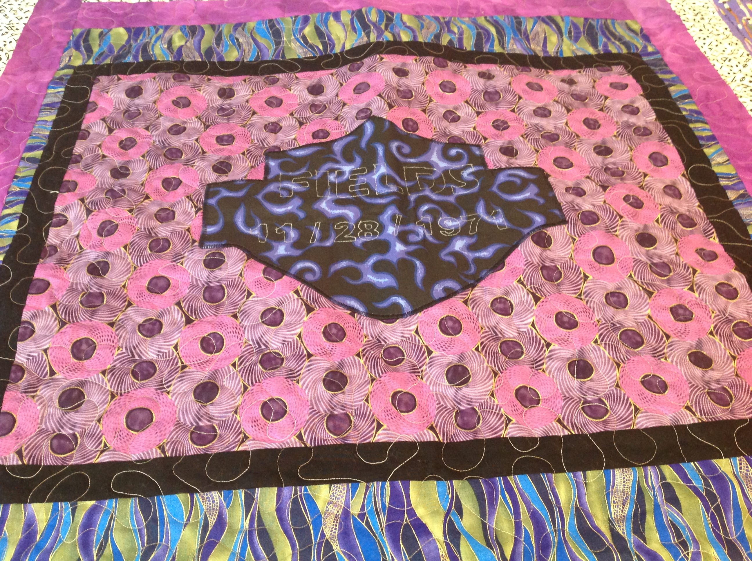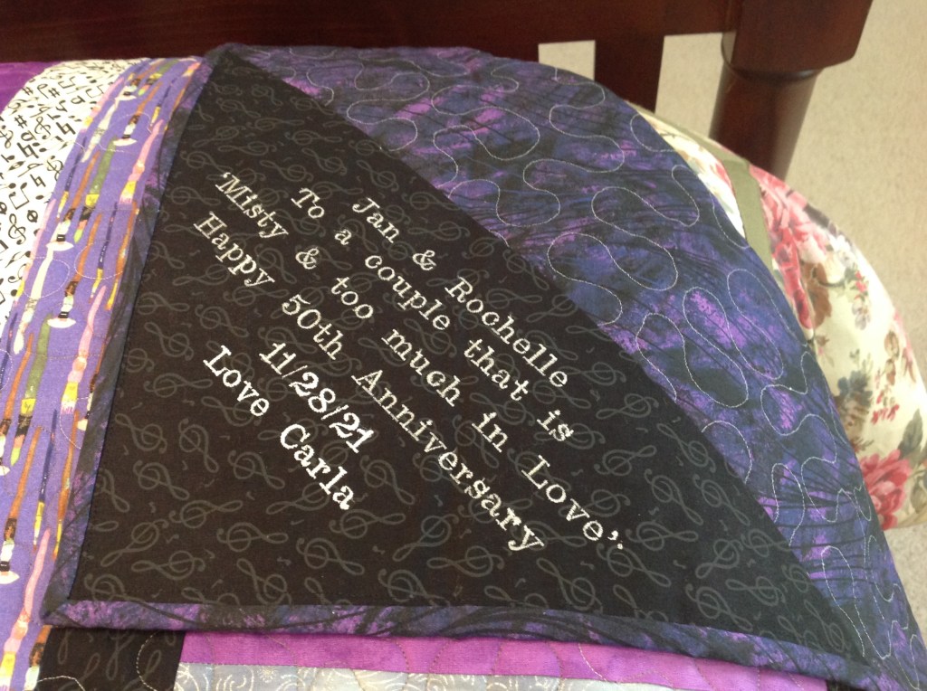 Here’s some pictures of the magnificent quilt Carla gave us for our 50th wedding anniversary.