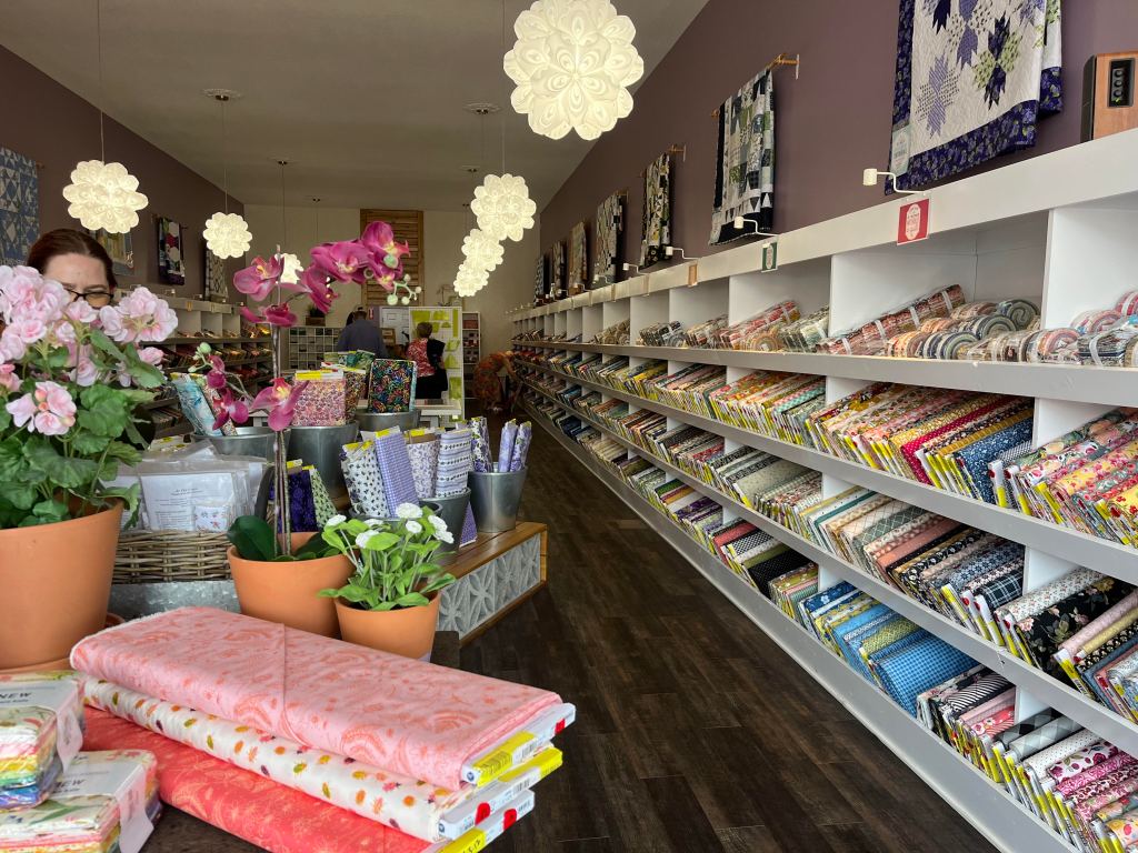 Two years later, she realized her dream of visiting Hamilton Missouri, famous home of Missouri Star Quilting Company. Row after row of colorful prints delighted her. Now she could complete her UFO’s—unfinished objects.