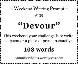 A word prompt to get your creativity flowing this weekend. How you use the prompt is up to you. Write a piece of flash fiction, a poem, a chapter for your novel…anything you like. Or take the challenge below – there are no prizes – it’s not a competition but rather a fun writing exercise. If you want to share what you come up with, please leave a link to it in Sammi’s comment section.