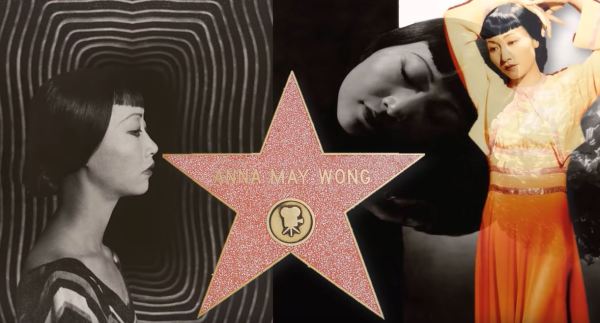 This week’s photo has us inside what appears to be an art gallery with blue walls. Hanging from a square light fixture are red and golden ornaments. There are canvasses on the blue wall. One painting is of a floral arrangement. To the left there’s another section with red wall.