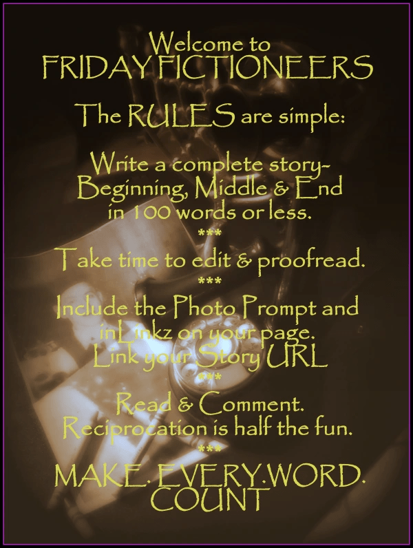 The next photo is the PROMPT. Remember, all photos are property of the photographer, donated for use in Friday Fictioneers only. They shouldn’t be used for any other purpose without express permission. It is proper etiquette to give the contributor credit.